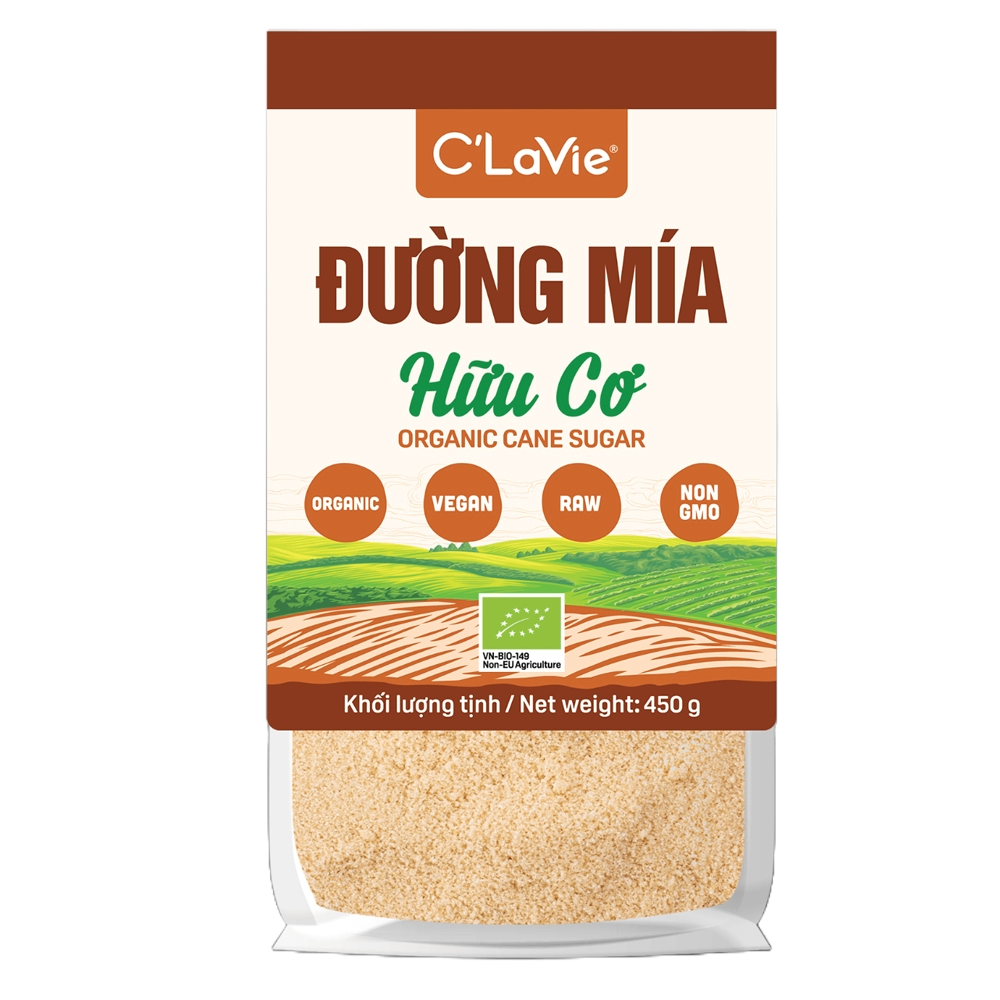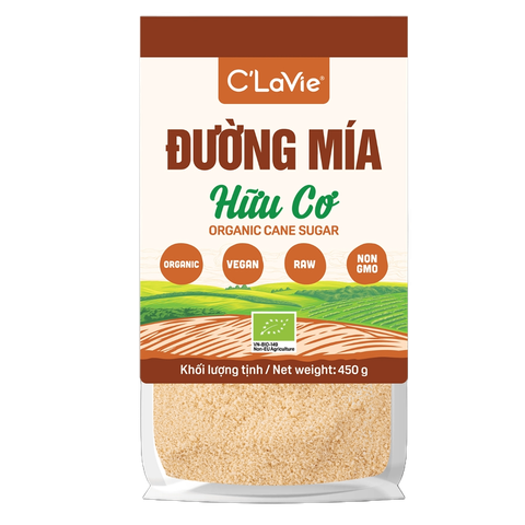 Đường mía hữu cơ C’LaVie 450g là sản phẩm đường tự nhiên cao cấp, được sản xuất từ mía hữu cơ đạt chuẩn quốc tế, không sử dụng hóa chất hay chất tẩy trắng, giúp giữ lại tối đa khoáng chất tự nhiên và hương vị đặc trưng của mía.