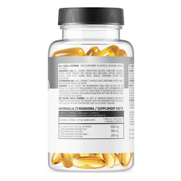 Ostrovit Omega 3 Extreme (180 viên) là thực phẩm bổ sung dầu cá cao cấp với 1,000mg dầu cá, 500mg EPA và 250mg DHA mỗi khẩu phần, mang lại lợi ích vượt trội cho tim mạch, não bộ, thị lực và phục hồi cơ bắp. Được sản xuất tại Ba Lan với tiêu chuẩn GMP, không tanh, tinh khiết cao, sản phẩm là lựa chọn lý tưởng để nâng cao sức khỏe tự nhiên. Hãy thử Ostrovit Omega 3 Extreme để trải nghiệm sự khác biệt!