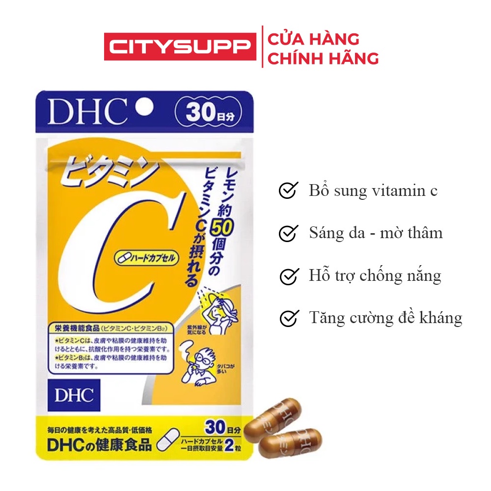 DHC Vitamin C Hard Capsule bổ sung vitamin C, vitamin B2 cho cơ thể; hỗ trợ duy trì sức khỏe của da, hỗ trợ giảm thâm da; giúp da sáng mịn.